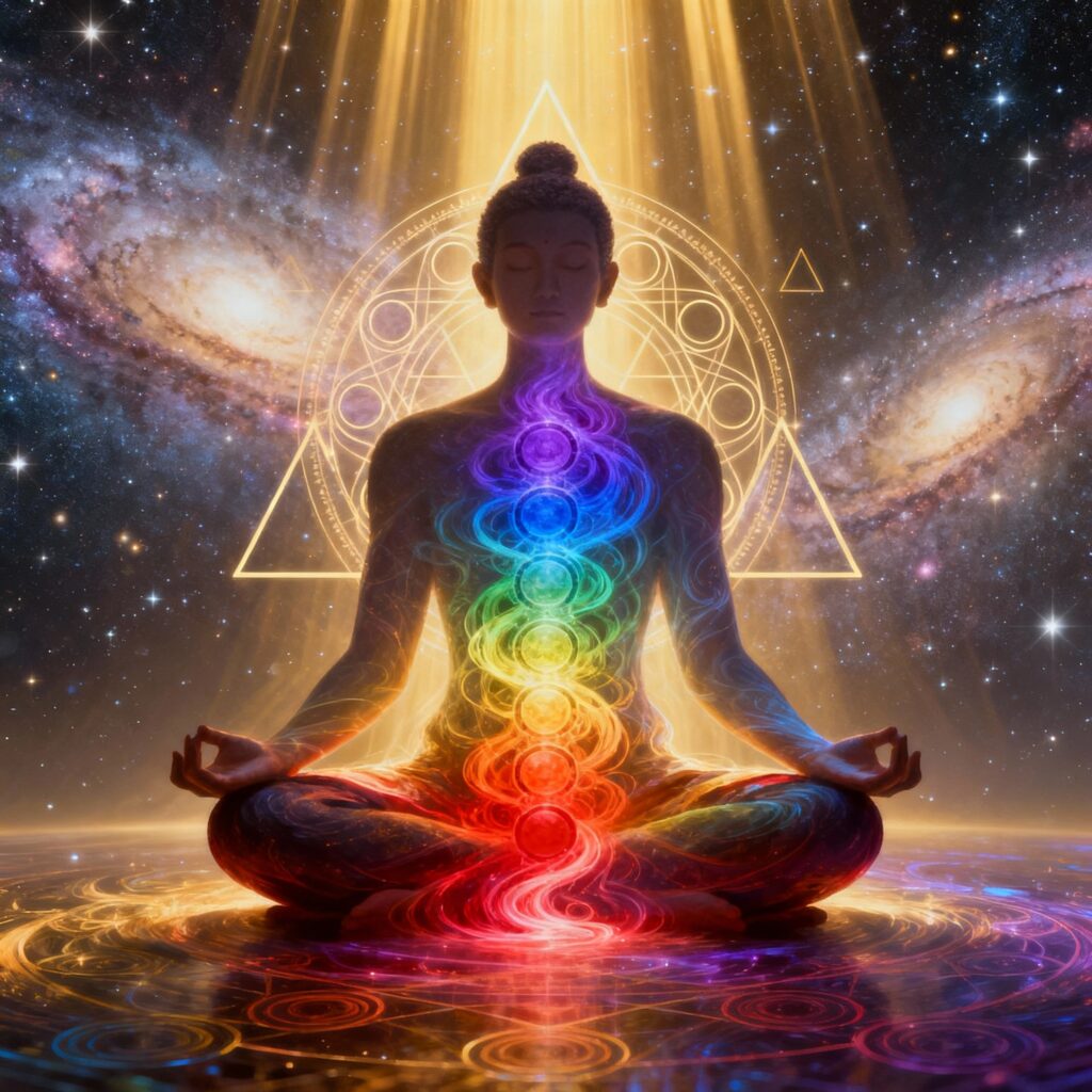 Cosmic Healing is the art of channeling universal life-force energy to restore harmony in the body, mind, and spirit. Through meditation, chakra activation, mantra vibration, and aura cleansing, it removes energetic blockages and awakens the natural flow of prana within you.
